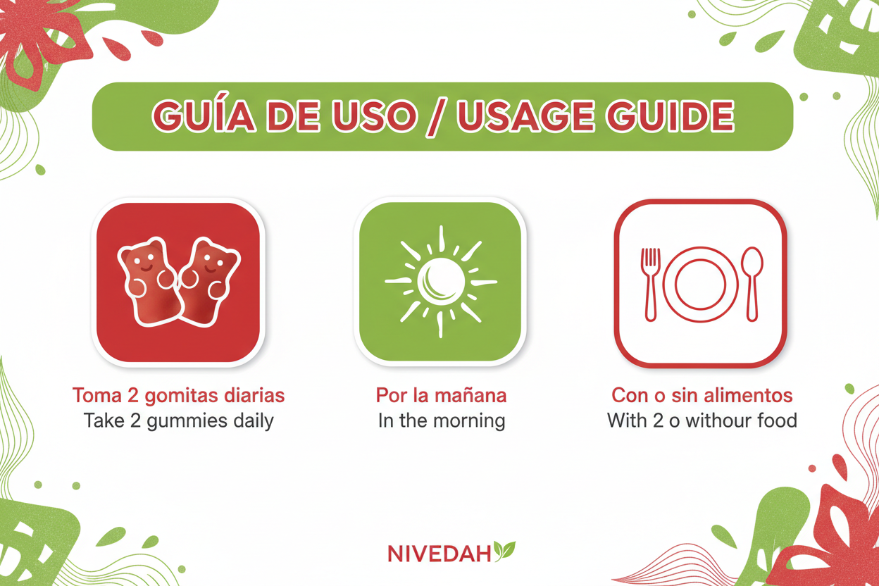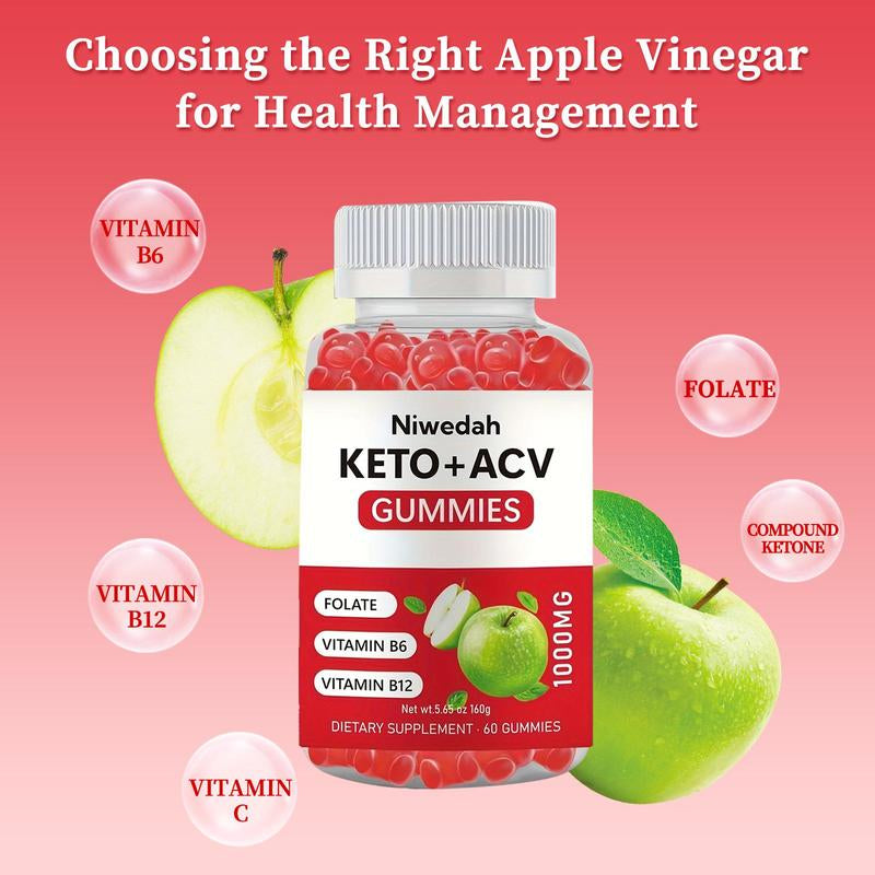 Bienestar completo con Niwedah Gomitas de Vinagre de Manzana sin Azúcar. Fórmula 3-en-1 con Vitamina B12 y D3 para salud digestiva y bienestar femenino.
